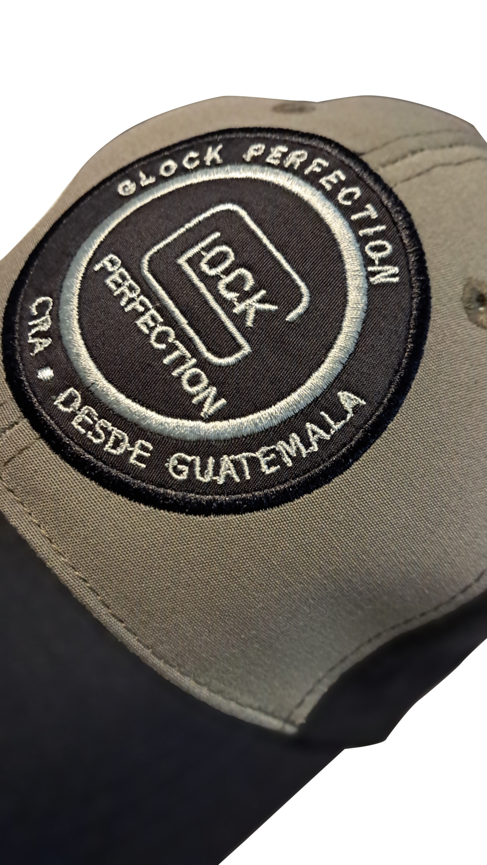 Gorra Glock Perfection negra y verde olivo, cómoda, con bordado oficial y diseño táctico.