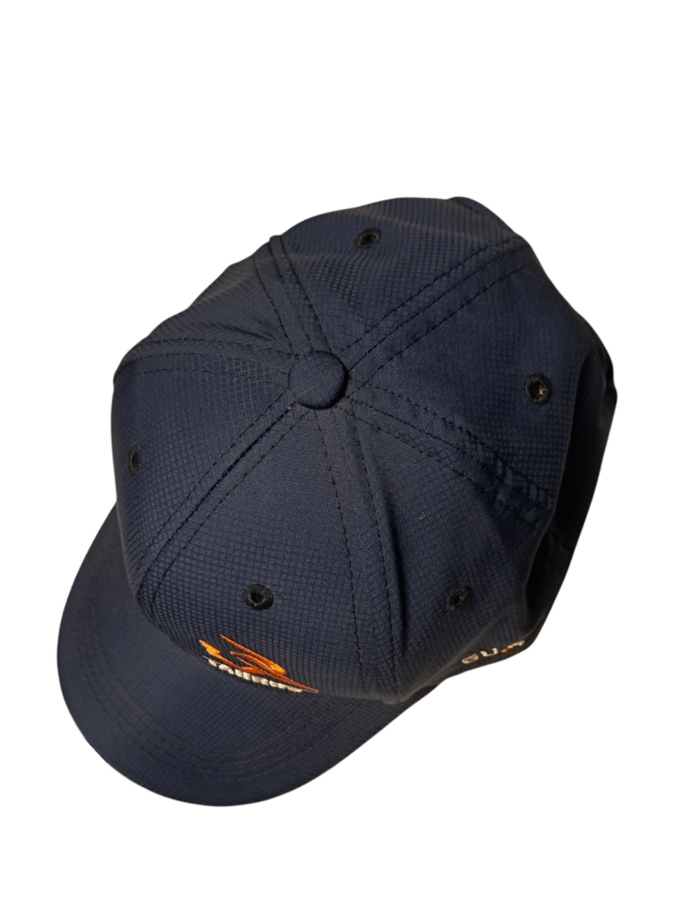 Gorra Taurus azul marino con logo bordado naranja y blanco. Ajuste de velcro y diseño táctico ideal para uso diario o entrenamiento. Disponible en Armate Guatemala.