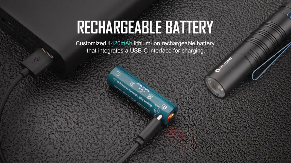 • Batería recargable USB-C incluida: celda personalizada 14500 con puerto de carga USB-C integrado, práctica y fácil de recargar en cualquier lugar.