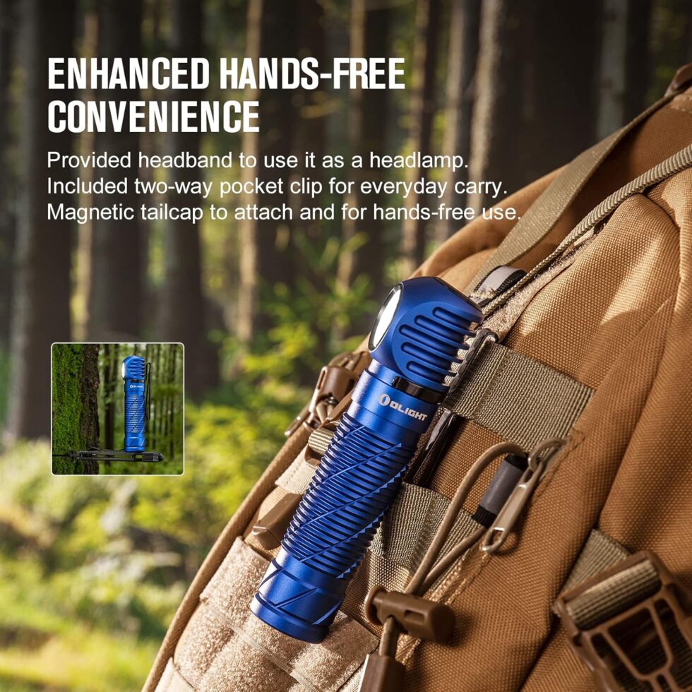 La Olight Perun Mini 2 es una linterna compacta, ligera y poderosa. Con su clip bidireccional y banda para cabeza incluida, es ideal como linterna de mano o frontal.